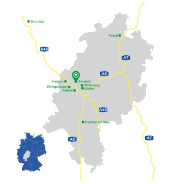 - Richtung Süden (A5) erreicht man in ca. 11 km Entfernung über Wetzlar-Blasbach