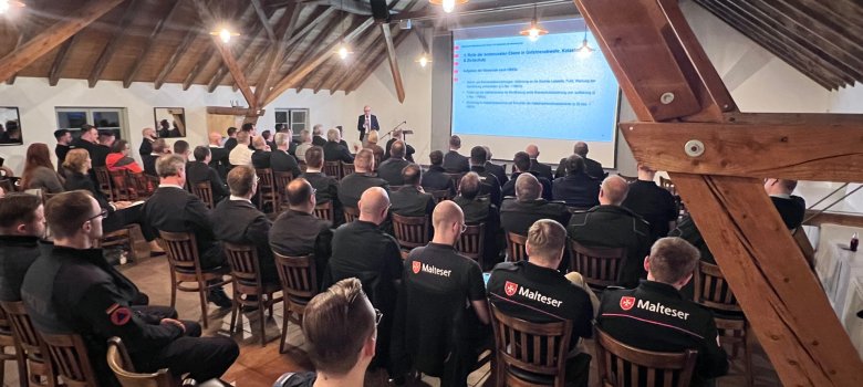 Einen inhaltlichen Auftakt bildete ein Vortrag von Dr. Tobias Bräunlein vom Hessischen Ministerium des Innern, für Sicherheit und Heimatschutz. Er ordnete zentrale Aspekte des Zivil- und Katastrophenschutzes ein und gab wichtige Impulse für die weitere Zusammenarbeit auf Landes- und Kreisebene.